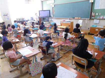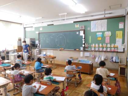 板橋タイムの時間にベン図を使って,りんごとみかんを比較しました。