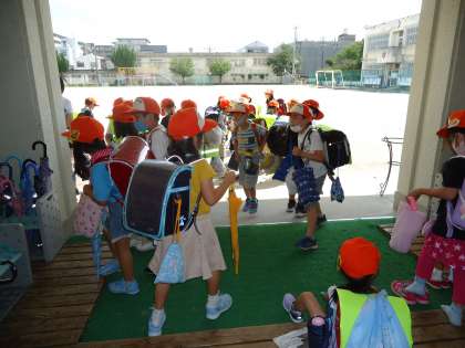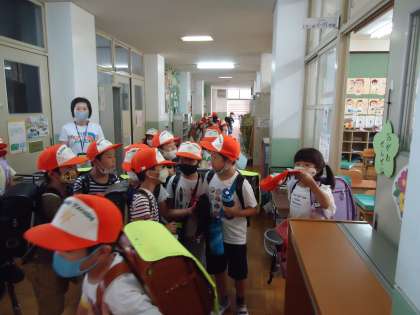 子どもたちで 集まり,下校をするようになりました。帰り道同じ方向のみんなで 待ち合せをして,仲良く帰ります。
