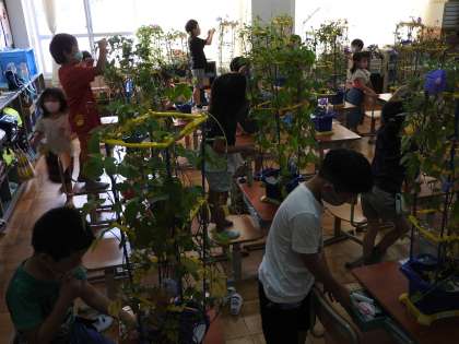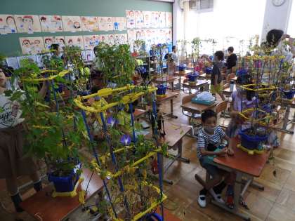 あさがおを きょうしつに