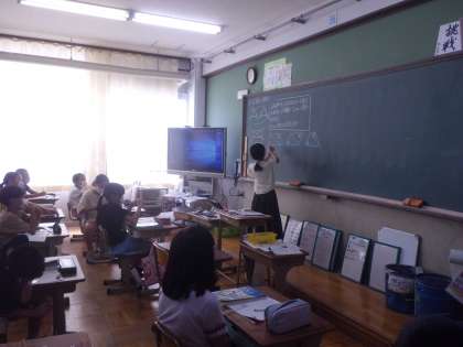 算数科で「合同な図形」に取り組んでいる5年生たち。