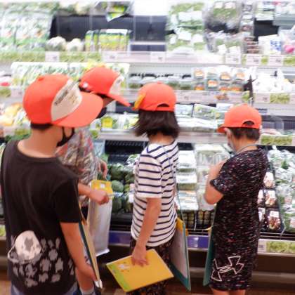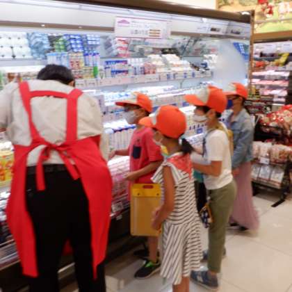 今日は,スーパーマーケットの工夫をさぐるために,見学に行きました。