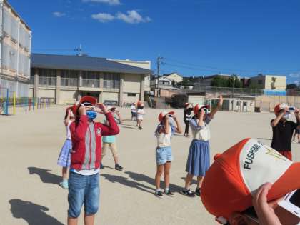 しゃこうばんを使って,太陽とかげの位置をかくにんしました。