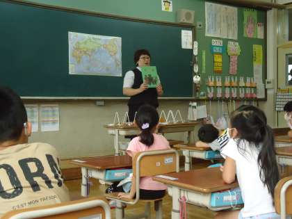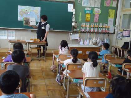 伏見中央図書館の方に来ていただき,ブックトークしてもらいました。