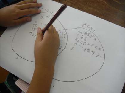 ものさし と まきじゃく のそれぞれのよいところなどをベン図にまとめました。