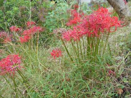 学校の東門の横に,彼岸花が美しく咲いています。