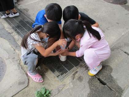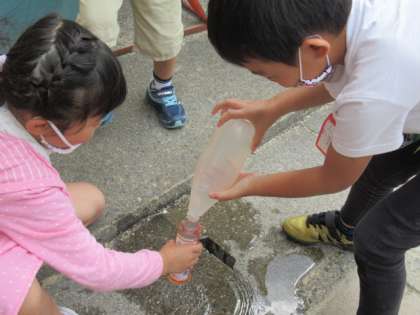 容器から容器へ水を移し替えてあふれるかどうかで確かめました。