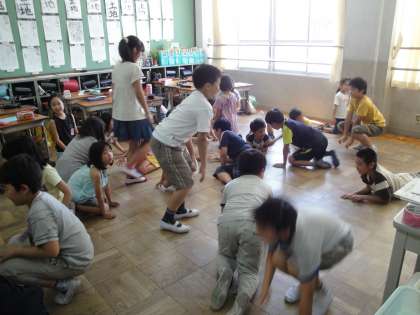 「ばくだんゲーム」で盛り上がった後,「進化じゃんけん」をしました。