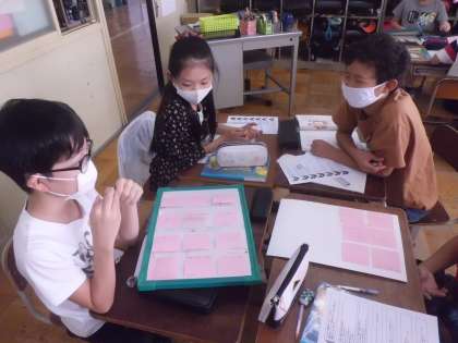 「トイレのスリッパを整理するのは,みんなからできることちゃうかなぁ。」「でも,あいさつも大事やしなぁ。」など,さかんな話し合いの声が聞こえてきました。