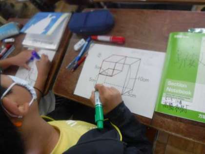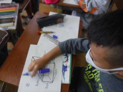 いくつかの角柱が合わさった図形や,穴の開いた円柱の体積の求め方を友だちと相談しながら考えました!