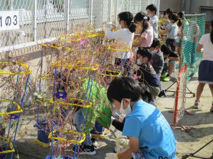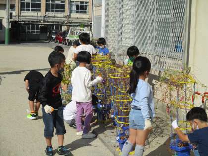 生活科の時間にあさがおの根っこの観察をしました。