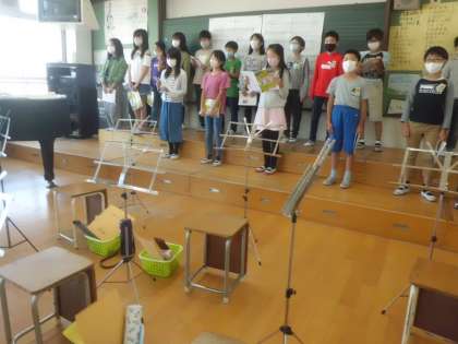 学習発表会にむけて「マイ・バラード」の合唱に取り組んでいる5年生たち。
