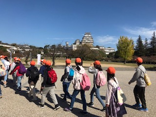 ついに国宝・姫路城への到着です。ガイドさんの案内を基に見学です。