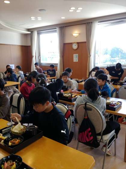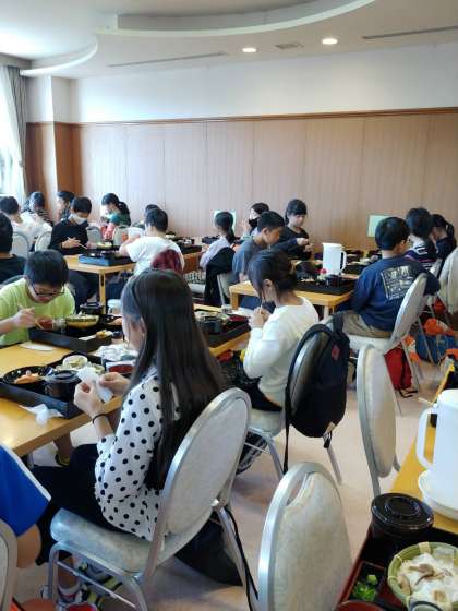 そうめんの里で昼食をとりました。対面にならないように工夫された座席配置です。