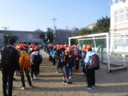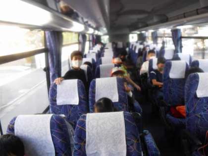 出発式を終えバスへと向かいました!
