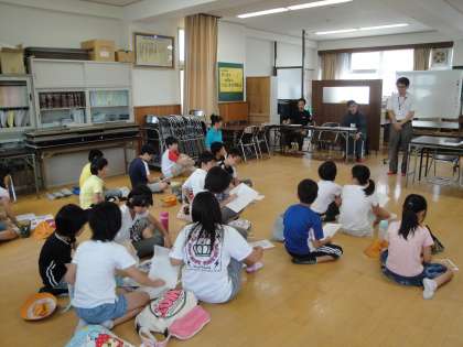 子どもたちは,スクリーンや絵を見ながら,意欲的に学習できていました。