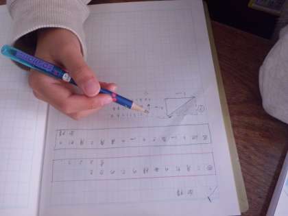「ここを切り取って・・。」「切り取った部分を,つなぐと・・。」「え,そんなんするん?私は・・。」といった主体的な話し合い活動を通して,三角形の面積の求め方を考えました。