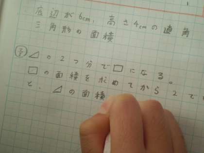 今日から5年生の算数科では「面積」が始まりました。4年生では,正方形・長方形の面積の求め方を学習しましたが,5年生では“三角形”についてです。