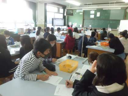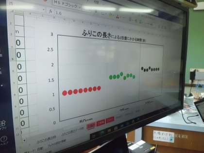 5年生は,理科「ふりこの動き」に取り組んでいます。今日は,前回各班で実験した結果の交流をタブレットを使ってしました。