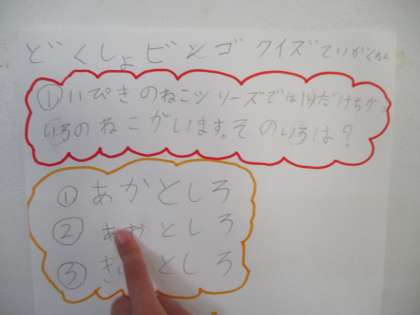 ビンゴには読書クイズもありました。