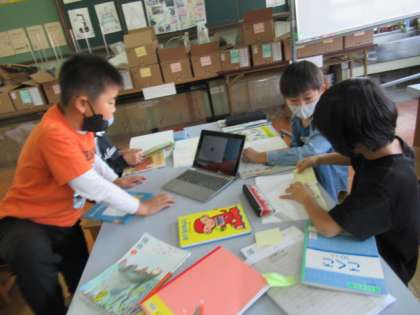 1年生に読み聞かせをする本は,どんなものがよいのかを話し合っています。