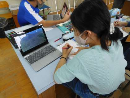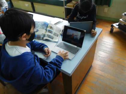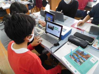 タブレットを使って,「火山や地震によって,土地がどのように変化するのか」調べました。タブレット操作がどんどん上達していきます。
