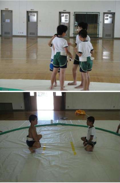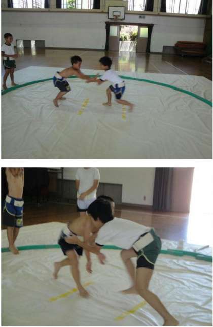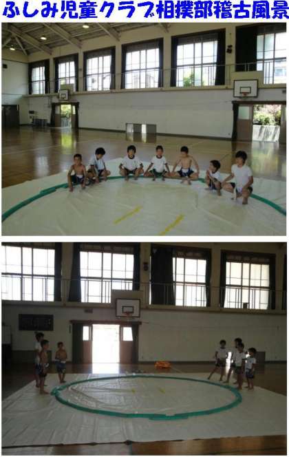 ふしみ児童クラブ相撲部は,毎週土曜日に活動しています。第2回目の稽古は,土曜学習終了後に,体育館で行いました。