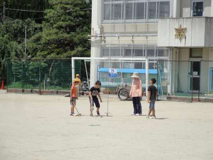 土曜学習終了後,運動場ではグラウンドゴルフが行われていました。地域のみなさんに優しく教えていただき,子どもたちは,楽しそうに参加していました。