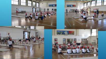 そして,あちこちで「どうやったら上手くできるん?」「目線をこうして・・。」「着地の時になかなか上手くできひんねんな・・。」「それはさ・・・。」といった多くのアドバイスの声が聞こえてきます。