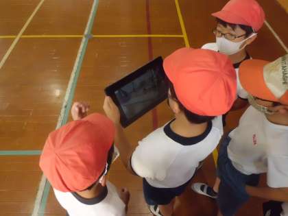 挑戦していく中でどのようにすれば,技が上手くできるのか・・?と,いうことでお互いに見合って伝え合ったり,タブレットで録画したりと,それぞれに応じた学習方法を考えて取り組んでいます。