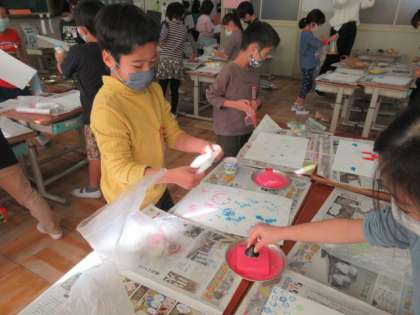 図画工作の「うつしたかたちから」の学習で,