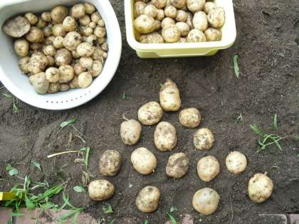 その結果,大中小と様々な大きさのジャガイモが,6年生全員分収穫できて,本当に良かった!やったあ〜!