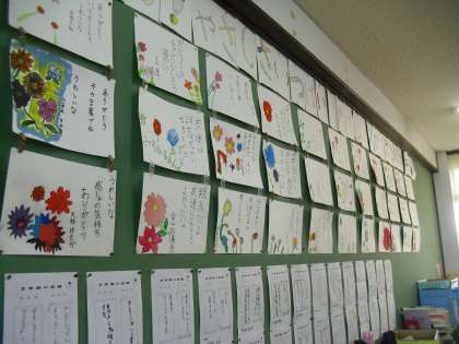 いま教室には,「人権の花」の絵と言葉を掲示しています。