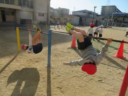 体育の学習で,てつぼうとなわとびに取り組んでいます。