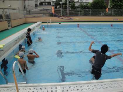 二日間,「25mを泳ごう」を合言葉にメダカ教室を行いました。担当の先生のアドバイスを聞きながら,子どもたちは一生懸命に頑張っていました。