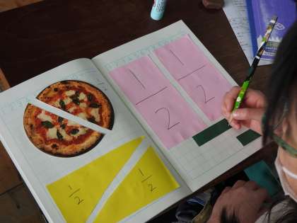 もとの半分の大きさをしらべて,新しいことをべんきょうしました。