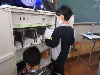 自分が借りたパソコンを,ていねいにもどすことができています。