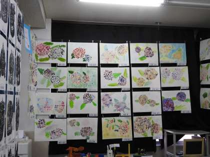 3年生は,『あじさいの絵』『お話の絵』『おにの版画』の中から,見てほしい物を選びました。