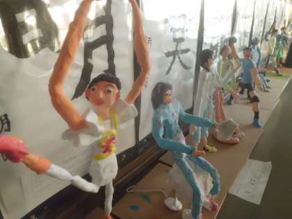 針金でできた人にポーズをつけて,紙粘土をつけて・・。何をつくっているのでしょう?