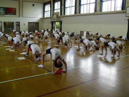元気いっぱいの子ども達が久しぶりに集まりました。少しみんなと話した後,さっそく体育館にて組体操の練習をしました。夏休み前から少しずつ練習していた一人技・二人技が上手にきまるようになってきました。夏休みが終わると運動会まであまり時間がないですが,みんなで力を合わせて心に残る組体操になるようにがんばりたいと思います。