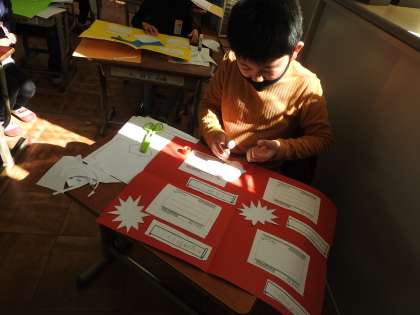 生れてきてから,今までの時間,たくさんのがんばりがあったことに気がついた,2年生。成長のまとめを,書きまとめています。