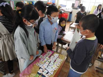 お店屋さんとお客さんとに分かれて,サラダの材料を集める学習をしました。