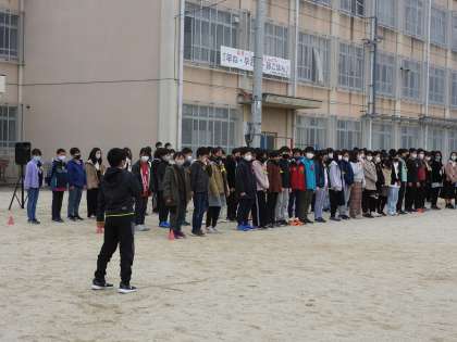 コロナ禍の中,3密をさけるために,運動場で行いました。