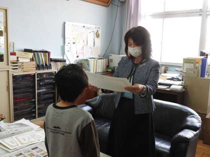 だから,校長室で表彰式をしました。