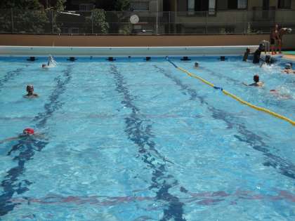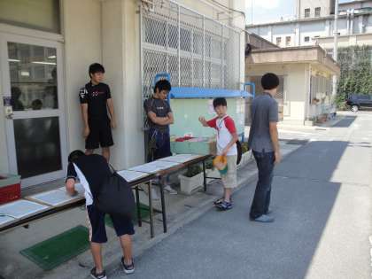夏休み最後のプール開放日。最後の水泳検定にたくさんの子どもたちが参加しました。決められた距離や速さ,泳法に子どもたちは,全力で取り組んでいました。