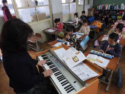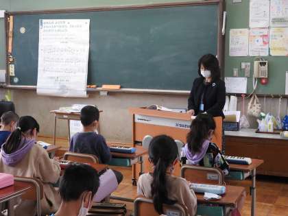 校長先生が,『こぎつね』の勉強中に,来てくれました。