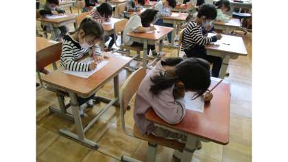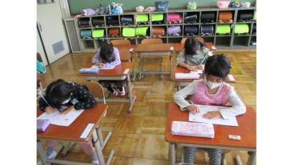 国語の時間には,教科書14・15ページを見て,座るときの良い姿勢と,正しい鉛筆の持ち方を学習しました。みんな,話をよく聞いて,上手に持っていました。さあ,いよいよ鉛筆を使った学習です。今日は,せんのおけいこをしました。まっすぐな縦の線,くるくる曲がる線など,静かに集中して学習することができていました。鉛筆を正しく持って,力を抜いて楽にいろいろな線が書くことができると,ひらがなを書くときにも思うように鉛筆を動かすことができるようになります。クーピーで色を塗るのも,鉛筆を思うように動かすための練習になります。いろいろなぬり絵も楽しみながら学習していこうと思います。