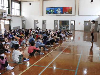 きりっと真剣な目で話を聞いてくれる4年生たち。