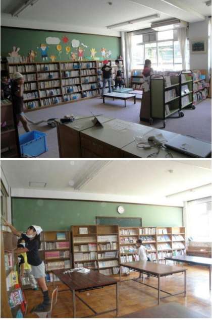 第1・第2図書館の掃除の様子です。本も喜んでいるようでした。