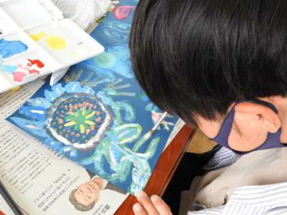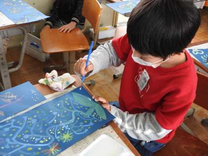 色が細かく変化するように,絵の具を混ぜすぎないようにしました。