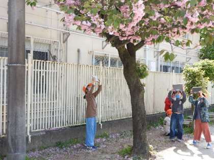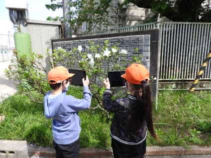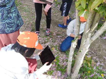 GIGA端末を使って,学校内にある『春』を観察しました。